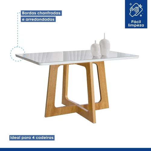 Mesa Arizona 120cm com 4 Cadeiras Arizona Tampo Smart Plus com Vidro Cinamomo/Off White/Boucle Gelo