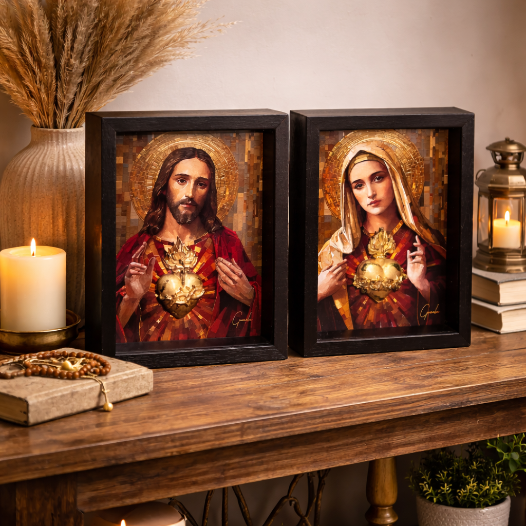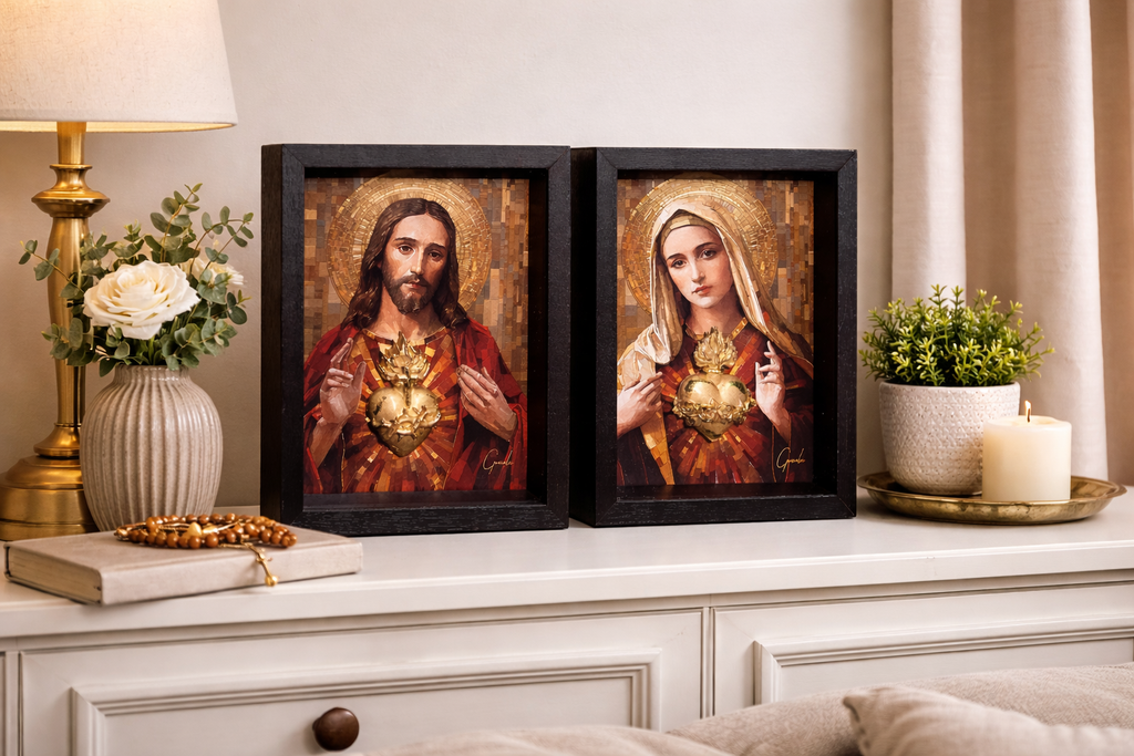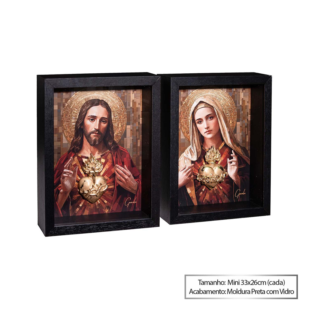 O Quadro Os Sagrados Corações de Jesus e Maria, do artista Gonzalez, é uma obra que transmite fé, devoção e profunda espiritualidade. Este conjunto apresenta o Sagrado Coração de Jesus e o Imaculado Coração de Maria com riqueza de detalhes e uma simbologia que atravessa gerações.