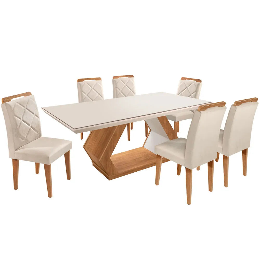 🍽️ Mesa de Jantar Alvorada 180 cm com 6 Cadeiras Rufato – MDF e Vidro